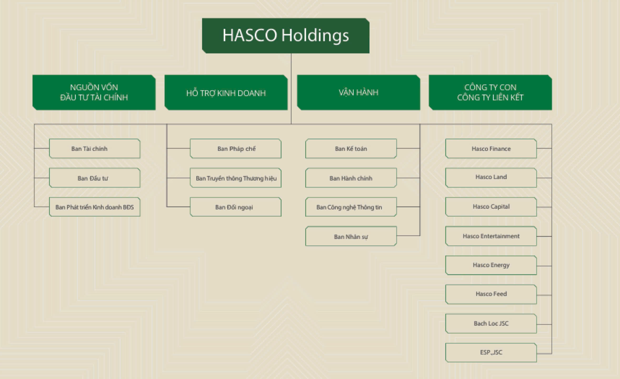 Văn hóa HASCO Holdings được bồi đắp từ tinh thần “Đầu tư giải pháp - Kiến tạo giá trị”, nơi mỗi thành viên cùng nhau kiến tạo, cộng hưởng và lan tỏa những giá trị tốt đẹp. Chúng tôi đề cao sự tiên phong, bản lĩnh và linh hoạt, khuyến khích mỗi cá nhân phát huy vai trò Người kiến giải để chung sức hiện thực hóa sứ mệnh: tái sinh, kiến tạo giá trị và định hình một tương lai tài chính linh hoạt, bền vững cho cộng đồng doanh nghiệp và nhà đầu tư tại Việt Nam.